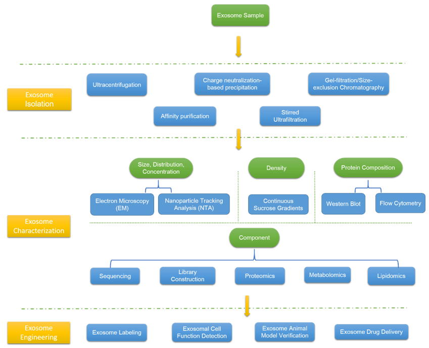 Exosomes naturally transport mRNA, miRNA, and proteins between cells, which form a major component of exosome cargo. They have been regarded as a vital source of biomarkers and therapeutic cargo. Specific detection methods include miRNA sequencing, whole exosome RNA sequencing, library construction, proteome analysis (iTRAQ, TMT, Label-free), exosome lipidomics & metabolomics analysis, etc.